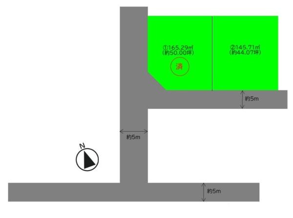 - 二方(北 公道 5.5m 間口 13.6m)(東 私道 4.0m 間口 8.0m)